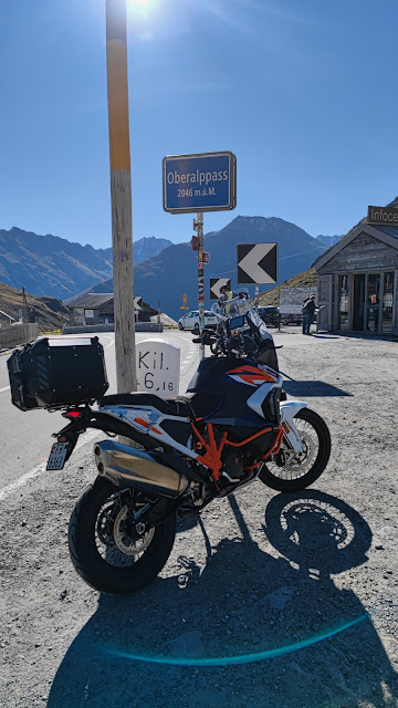 Les sacoches latérales sont parfaites bien que la contenance n'est pas énorme (2 x 17l). A voir si je veux aussi prendre des sacoches alu. Je pense de plus en plus que les chemins sont du passé pour moi. Je n'y prends plus autant de plaisir. La 1290 est parfaite pour découvrir des endroits par la route. Agile, facile, le poids bien contenu et pas haut perché, des accélérations parfaites. Reste la protection à revoir. Au niveau de la tête - les turbulences latérales - et au niveau des jambes (Puig avait fait quelque chose pour le modèle précédent).